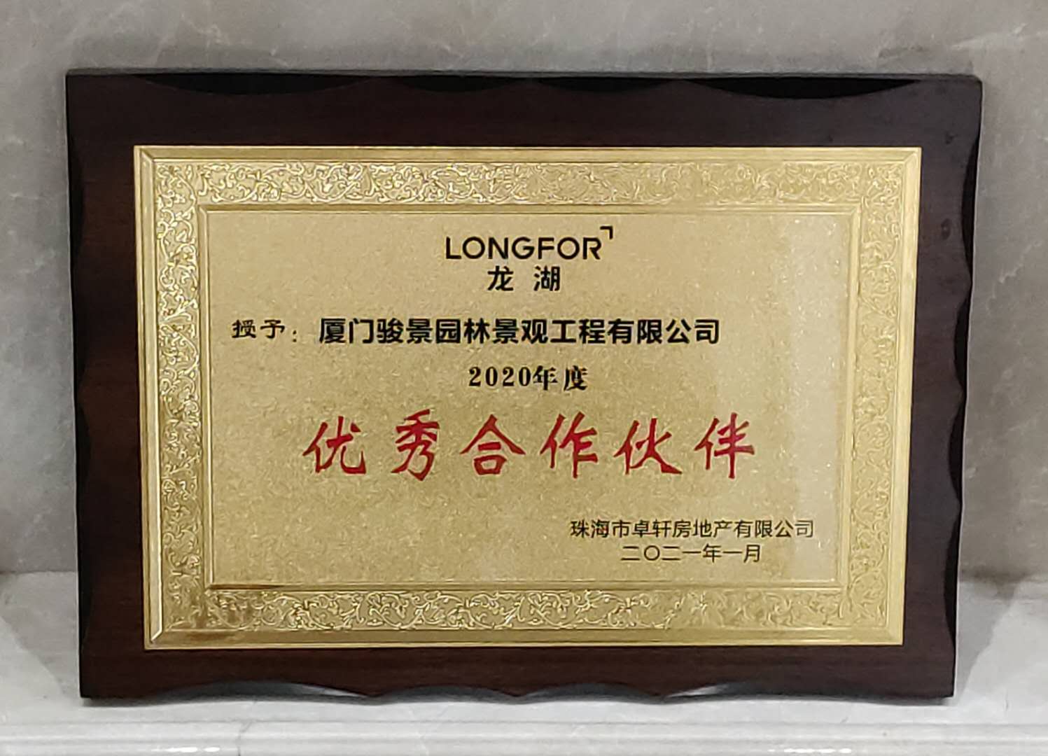 龙湖珠海市卓轩房地产有限公司授予我司“2020年度优秀合作伙伴”
