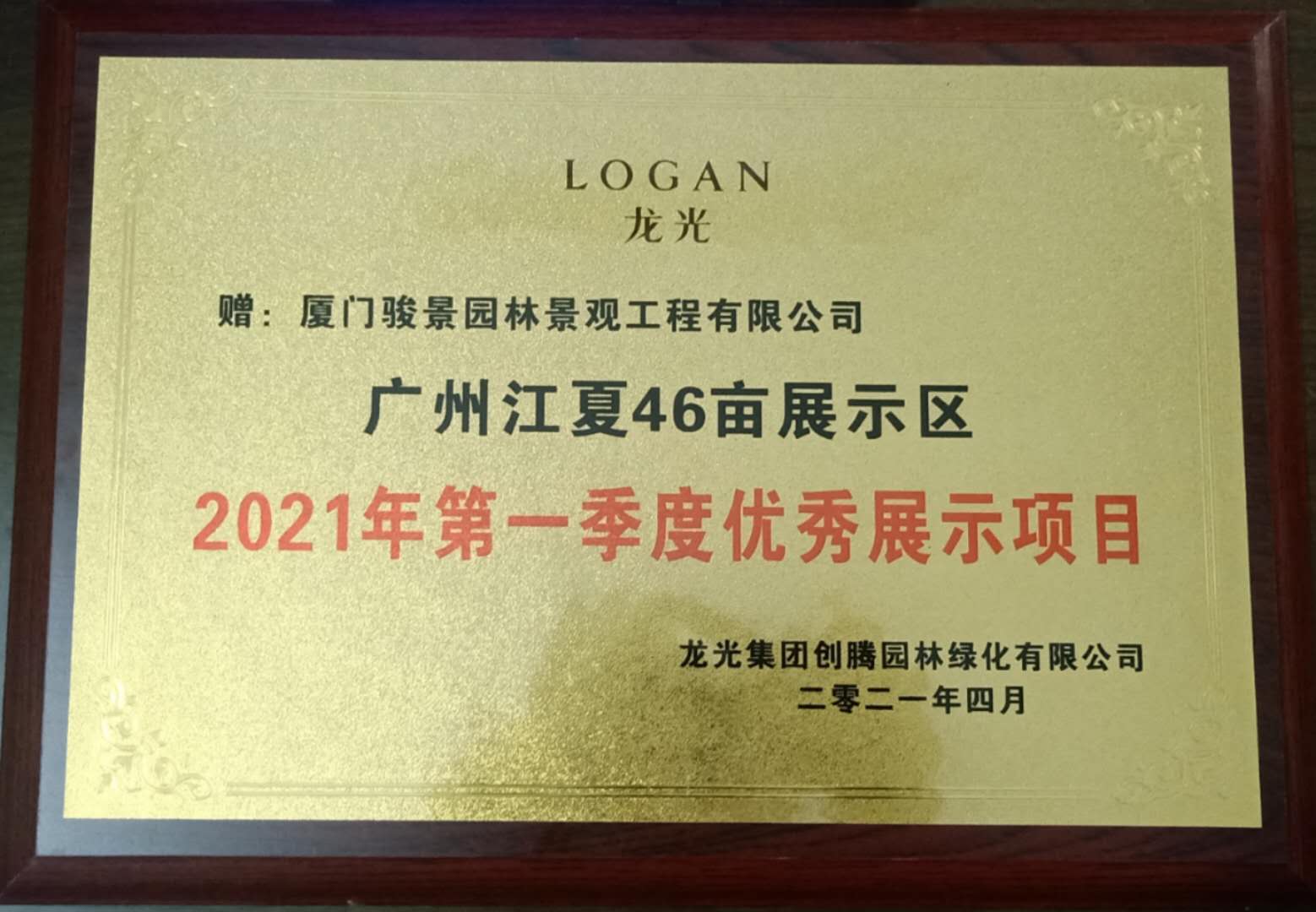 广州江夏46亩展示区 授予“2021年第一季度优秀展示项目”